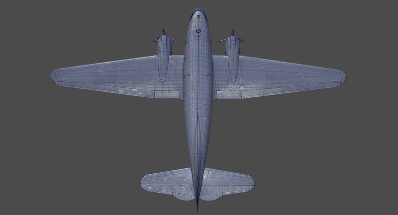 Textured 3D model of American aircraft Curtiss C-46 Commando.