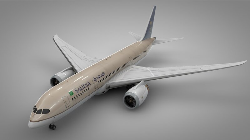 Boeing 787 Dreamliner SAUDIA L892 is ready to be animated. You can easily position it the way you need or animate.