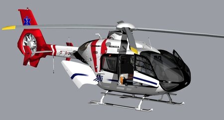 日本のドクターヘリを再現した機体です、メイン&サブローターの回転表現用テクスチャ、 ストレッチャー開閉選択、操縦席ドアと貨物ドアの開閉選択、横スライドドア左右別部品、 内装入りです。実機の塗装色とロゴマークは許可されて居ないのでオリジナルカラーで 作成してあります。