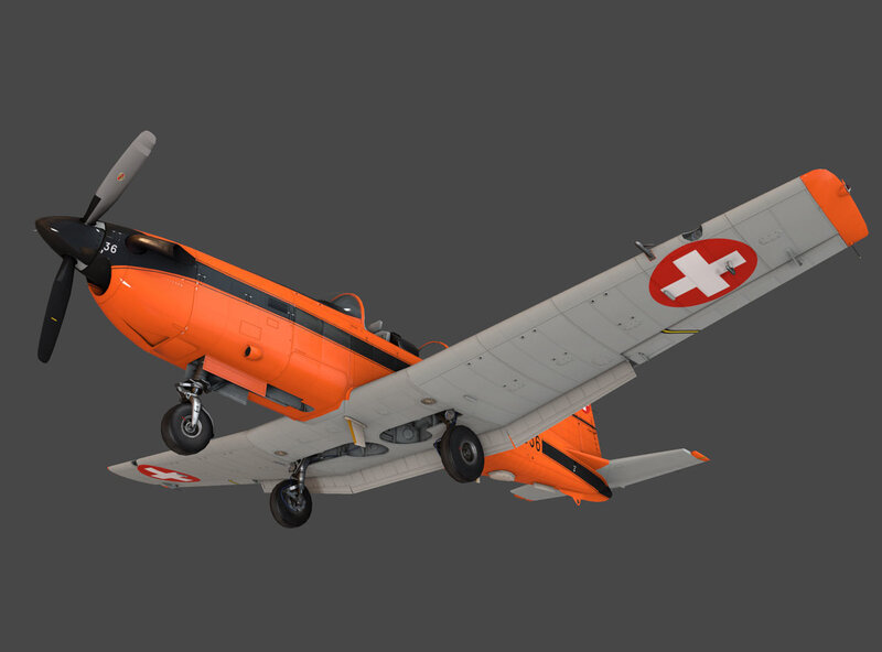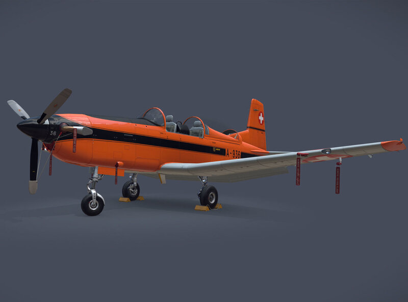 Low-poly 3D model airplane (Pilatus PC-7 Mk-I) with LODs