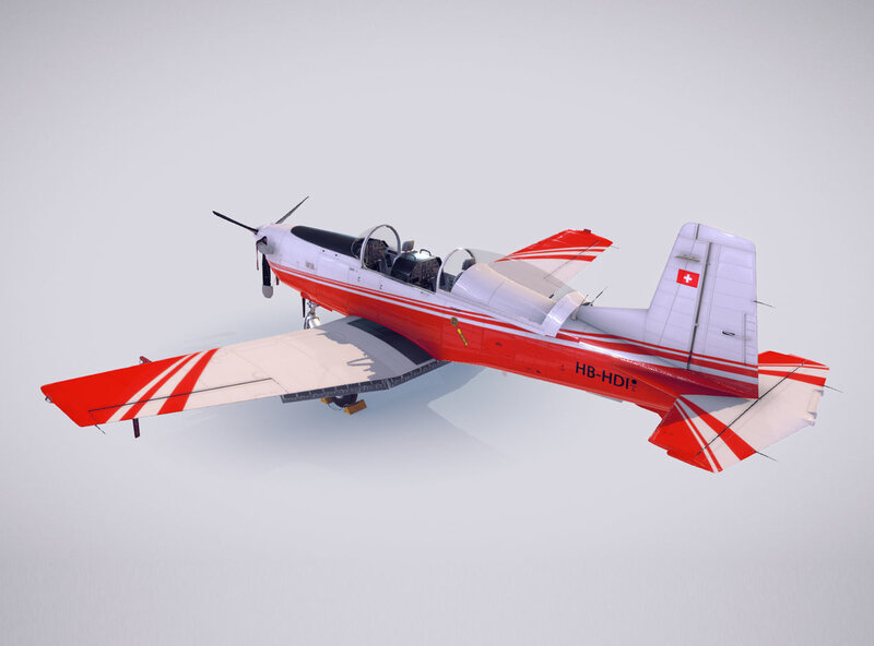 Low-poly 3D model airplane (Pilatus PC-7 Mk-I) with LODs