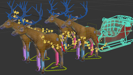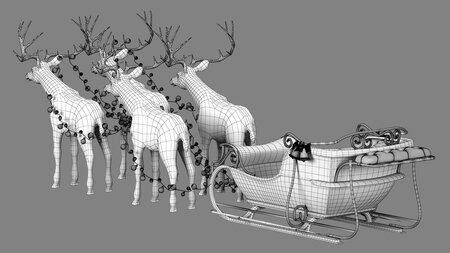 Santa deer and red sleigh