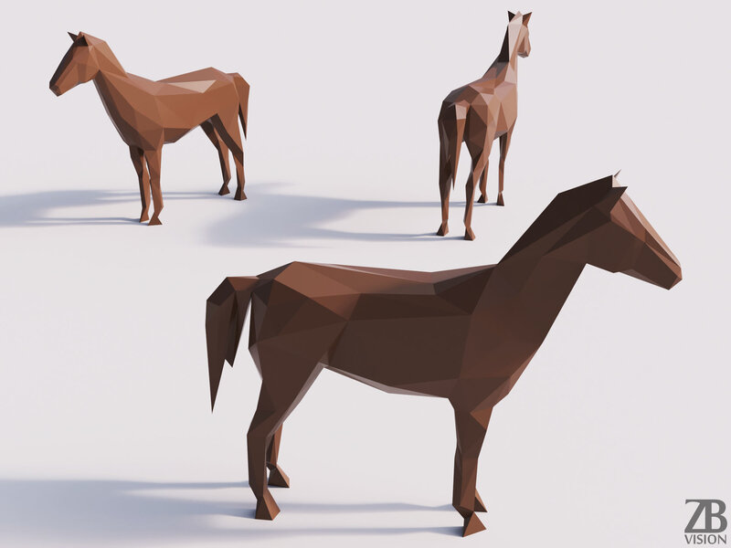 This is a lowpoly 3d model of a standing horse. The lowpoly horse was modeled and prepared for low-poly style renderings, background crowd, and general CG visualization. The 3d stallion is ready to be inserted e out of the b in your scene of.