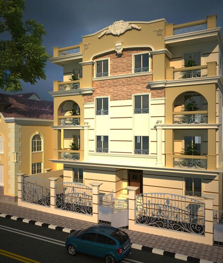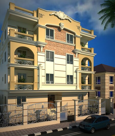 Residential Building in the cairo of egypt. There are 3 floors apartments on each floor. Parking in the basement with car space for