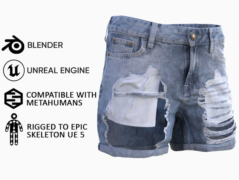 Denim Shorts 83 - All MH Bodies and UE5 Skeletons - Rigged Low-poly 3D model