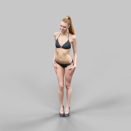 High quality, 3D scanned Female model. Scanned using photogrammetry for acurate and detailed representation of fabric and skin.