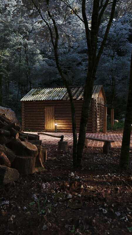 The scene contain 2 cabins, space for woods, a little lagoon, garage and cute bower. High resolution texture, models and features.