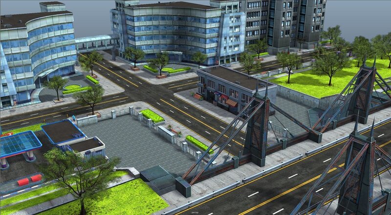 Pack of several city buildings and various props such as fences, flowerbed, signs, trees, etc. Created in Maya 2016, scene has some lighting setup. Also scene exported as FBX and OBJ formats.