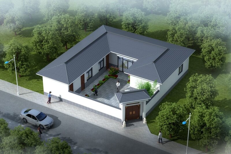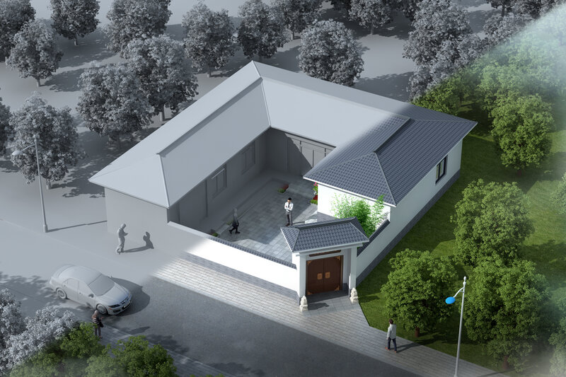 Chinese style new rural architectural design There are many advantages to a single story villa in the countryside, such as low cost, simple construction, and being very suitable for family living. In fact, besides building high-rise buildings in rural areas. A self built house on the first floor is also a good choice. For a small family of four, a bungalow is more livable, comfortable, and cost-effective! Model making software: 3ds Max 2014 Rendering software: vray3.60.03 for 3dmax2014 Note: does not include rendering psd files