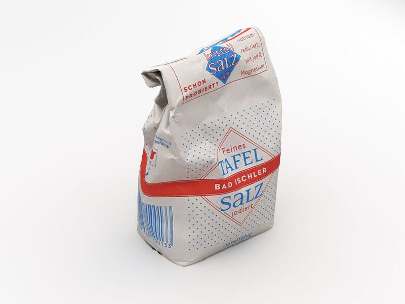 A DETAILED 3D MODEL OF A BAG OF SALT: