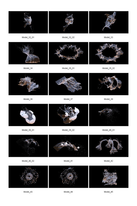 The product DOSCH 3D: Splash Effects contains 50 very detailed 3D-models of of static liquid effects. Use them the create stunning imagery for advertisement (drinks, cosmetics, food, fruits etc.) and presentations.