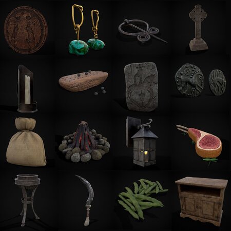 Medieval Prop Mix Twenty Three - 3D Models- Files Include FBX and OBJ. Includes PBR Texture in 4096 x 4096. - Maps include : Basecolor, Normal, Roughness, Height and Metallic. All Preview renders were done Marmoset Toolbag 4. See each models link in the content section for marmoset viewers and wireframe renders. Scaled to real world scale. Customer Service Guaranteed. From the Creators at Get Dead Entertainment. Please like and Rate! Follow us on FaceBook and Instagram to keep updated on all our newest models.