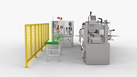 The drawing is the design of the automatic mobile phone film production line: the workstation where the new machine in the production line sticks the protective film, the machine is transported to the manipulator manipulator, and the machine is put into the filming tooling conveyor line for filming, and after completion, the manipulator will take it out and put it into the return conveyor. The drawing format is xt neutral format, which can be disassembled.