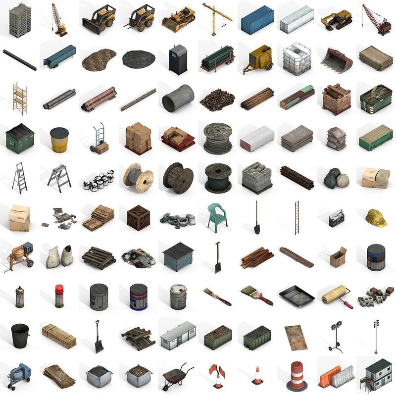 Construction Assets Collection of Building Materials Low-poly 3D model