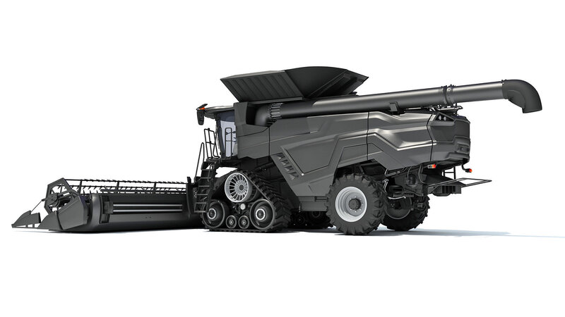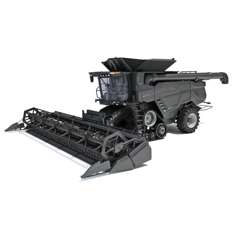 Detailed 3d model of black combine harvester.