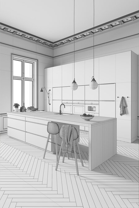 This is a fully textured interior scene with natural light setup, based on Mano Kitchen by Kvik.