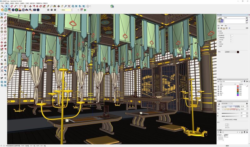 An ancient style vestibule dedicated to business affairs File composition:. skp2014, 2022, including ens presets and blender version 3.5 Outline within su: Dynamic components (door opening and closing): ENS internal rendering: Quick method to achieve sample rendering effect: