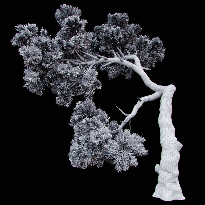 3d model of a curved pine tree.