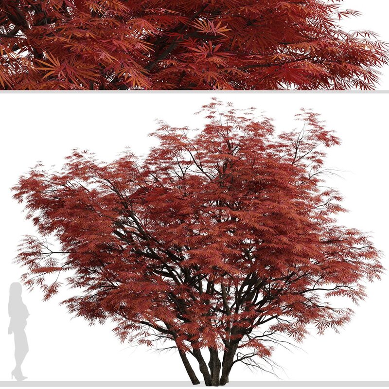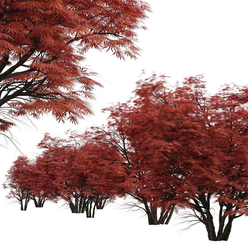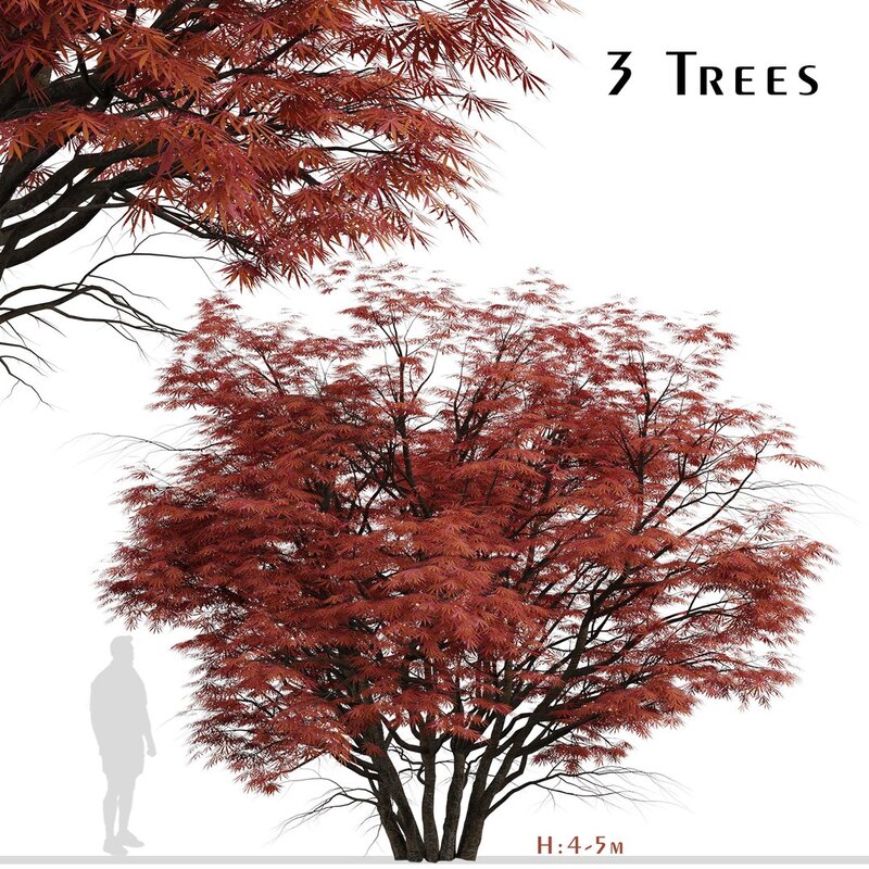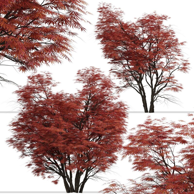 3 different Acer Palmatum ( Crimson Queen ) trees in the scene.