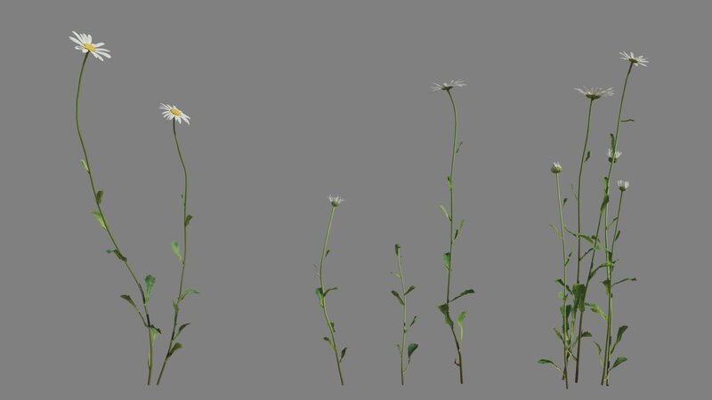 This is a daisy model made with Blender 3.0. There are 14 varying shapes, medium polys and low polys available, which support background and medium shot. The PBR maps come with accurate physical properties and rich details.