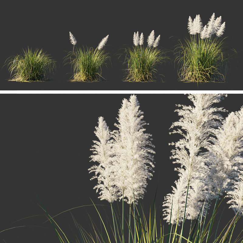 Cortaderia selloana collection. The asset includes 4 grass variations. The height of the grasses varies from 1.6m up to 2.8m. Completed with realistic shaders and textures.