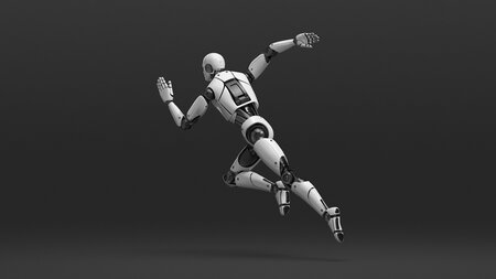 Advanced Male Humanoid Robot Running Pose is a 3D model of humanoid male cyborg, which is designed and manufactured to resemble a human male in appearance and movements.
