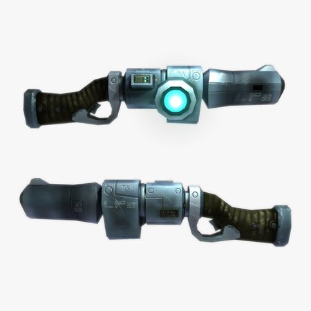 The Poly count for this model is 4366 tris including laser rifle. The character mesh and laser rifle are separate to allow the use of different weapon types.