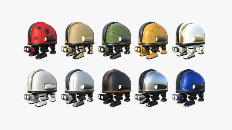 Turtleback Robot J - SciFi Character Design can be used as character costume/outfit/skin/clothing, or even as a decorative item.