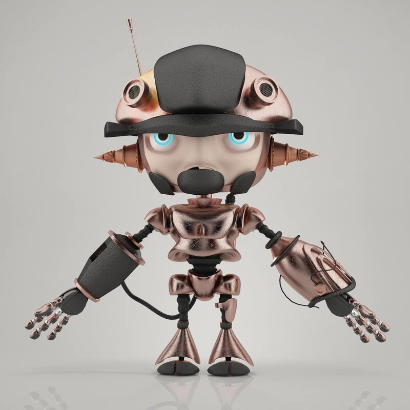 Mini Robot Concept is small robot with mega head I made it with mixed texture metal and leather