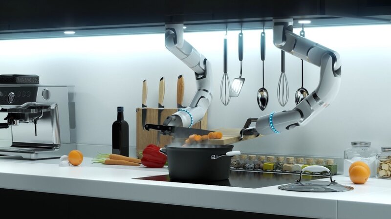 Robot Chef cooking soup 3d realistic animated scene Vray 3D model
