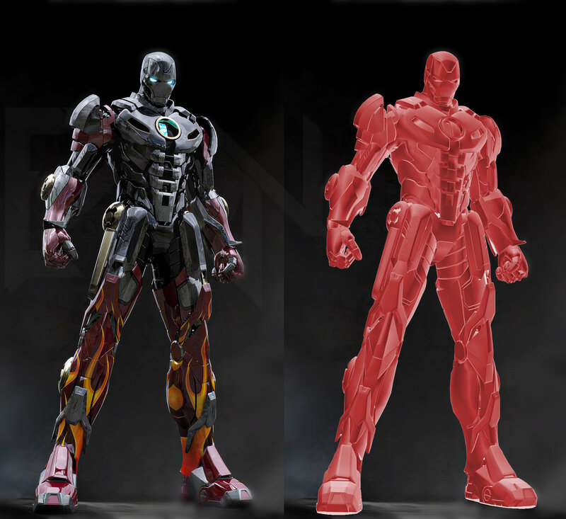 We designed this art rendition based on our own unique concept design of Iron Man and modeled it using 3DSmax.