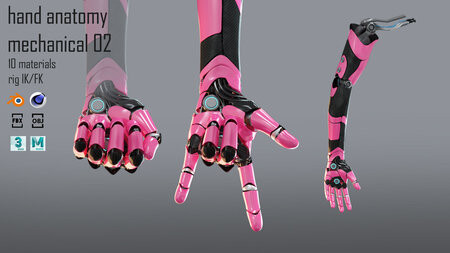 Robotic hand anatomy 02! the model has 10 materials for blender 2.8 that are very easy to modify and customize