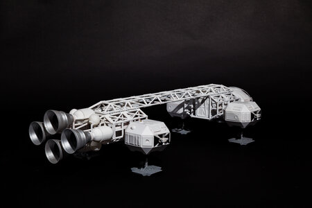 Space 1999 Eagle Transporter 22" model is half scale to the studio models used in the tv series, double the scale to 200% and you have a studio scale model that is accurate to the original tv models. Finished to a very basic standard, i have not sanded all of the parts and left the print lines to show how the parts come off the printer, all that has been done is a base coat of white with a little detailing for the photos. this model consists of 168 stl files and requires assembly.