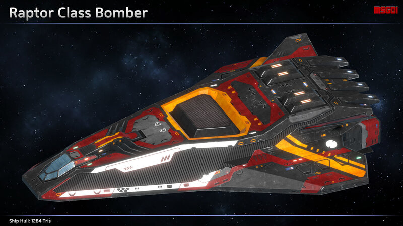 This pack contains a Raptor class bomber with modular weapons. It can be used in a space game.