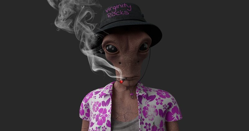 Alien in T-Pose (Low Poly and High Poly) and in normal standing pose (like on the renders above)
